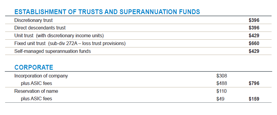 We offer fast, accurate and flexible services at competitive prices. *All prices inclusive of GST and subject to review at any time. Download a full copy of our price list here Services Companies Superannuation funds Trust deeds Prices